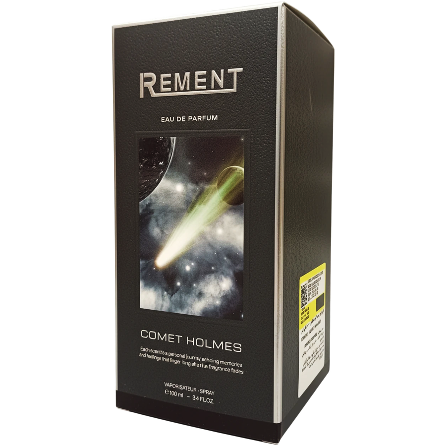 بستهبندی این عطر واقعاً خیرهکننده است! جعبهی مقوایی با بافتی خاص و رنگ طوسیی که روش تصویر بینظیری از عبور یک ستارهی دنبالهدار در کهکشان نقش بسته. شعارِ پشت جعبه ("A JOURNEY ACROSS THE STARS") هم حس ماجراجویی رو کامل میکنه.