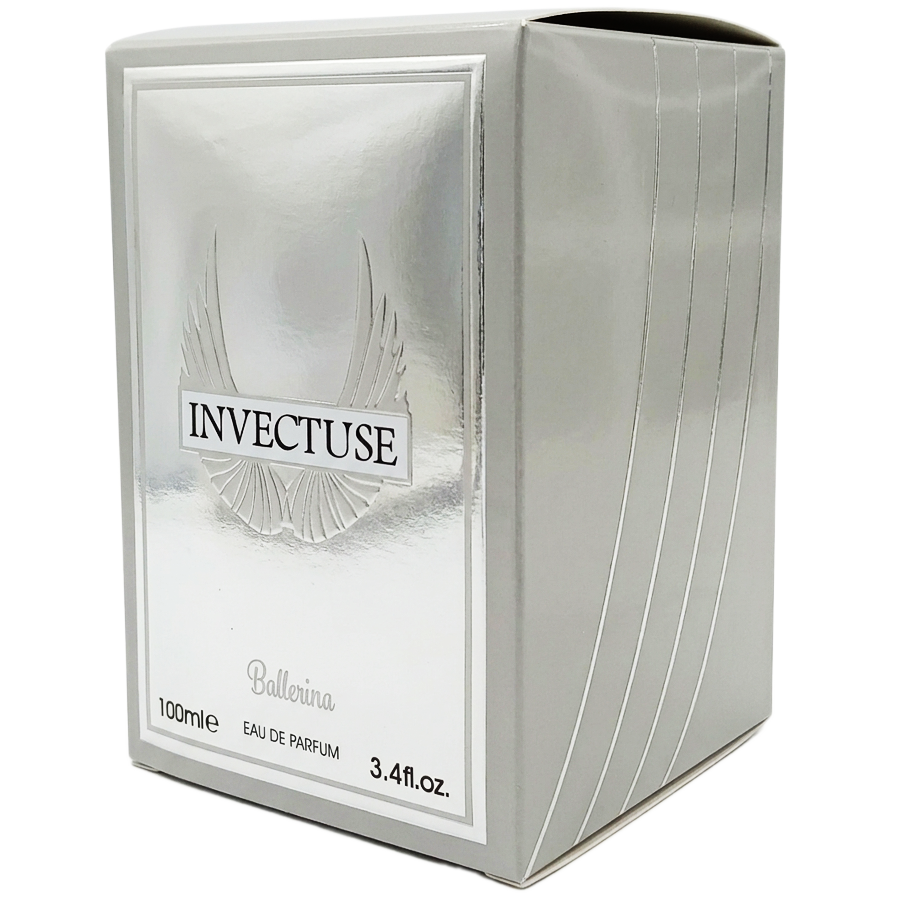 طراحی ظاهری: ظاهر این ادکلن هم دقیقاً داد میزنه که با یه عطرِ ورزشی و قهرمانی طرفیم! برند بالرینا بطری رو شبیه به یک کاپ قهرمانیِ بسیار شیک طراحی کرده. ترکیب رنگ مشکیِ براقِ بدنه با درپوش و دستههای نقرهایرنگ، ظاهرِ فوقالعاده جذابی بهش داده. لوگوی بالهای نقرهای با نوشتهی INVECTUSE روی شیشه، حسِ پرواز و اوج گرفتن رو القا میکنه. جعبهی نقرهایرنگ و براقش هم اون رو به یک گزینهی بینقص برای هدیه دادن به آقایونِ ورزشکار و پرانرژی تبدیل کرده!