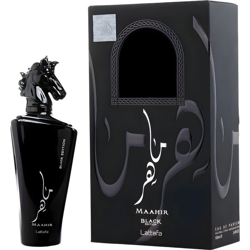 ماهر بلک ادیشن (Maahir Black Edition) از برند پرآوازه لطافه، عطری یونیسکس (مشترک) و با طبع گرم است که برای تسخیر سرمای فصول سرد سال طراحی شده است؛ این عطر با ماندگاری استثنایی ۱۰ تا ۱۲ ساعت و پخش بوی بسیار قوی، روایتی دودی، چرمی و تاریک را از قدرت و اصالت به تصویر میکشد.