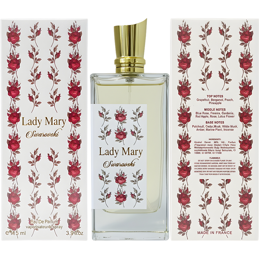 لیدی ماری (Lady Mary by Swarovski) یک ادو پرفیوم زنانه است که ظرافت کلاسیک را با جذابیتی مدرن و قوی در هم میآمیزد. این عطر با ترکیبی گلی، میوهای و شیرین، برای خانمهای شیکپوش، کاریزماتیک و مستقل طراحی شده است. با وجود رایحهٔ ملایم و شیرین اولیه، عمق چوبی و دودی نتهای پایانی، ماندگاری بالا و پخش بوی قوی آن را تضمین میکند و رایحهای جذاب و دلنشین به جا میگذارد.