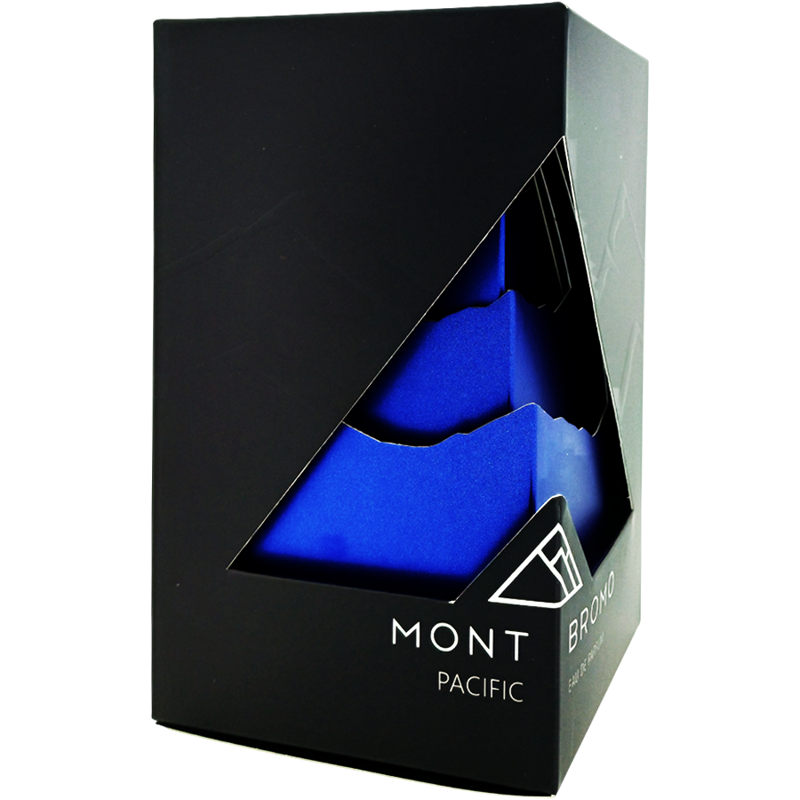 مونت برومو در تولید پسیفیک، بر استفاده از اسانسهای مرغوب و عطرسازان برجسته تأکید دارد. این عطر در غلظت ادو پرفیوم عرضه شده و به دلیل ساختار دقیق، از نظر پرفورمنس در دسته عطرهای ماندگاری و پخش بوی بالا قرار میگیرد. طراحی شیشه عطر با رنگ آبی مات، بهخوبی تلاطم و زیبایی آبهای اقیانوس را بازتاب میدهد.