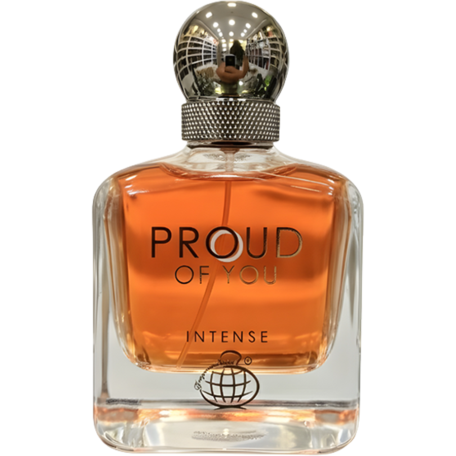پرود آف یو اینتنس، همانطور که از نامش پیداست (اینتنس)، تفسیری غلیظتر، شیرینتر و نافذتر از رایحهٔ اصلی یو است. این ادوپرفیوم از برند شرکتی فراگرنس ورد (Fragrance World)، با رایحهای بسیار گرم، شیرین و شرقی، برای مردانی طراحی شده که به دنبال یک امضای بویایی پرقدرت، اغواگر و پر سر و صدا برای شبهای سرد هستند. Intense بیانگر حضور پرحرارت و غیرقابل مقاومت است. عطر پرود آف یو اینتنس از برند فراگرنس ورد، رایحهای مشابه استرانگر ویت یو اینتنسلی جورجیو آرمانی (Stronger With You Intensely Giorgio Armani) دارد.